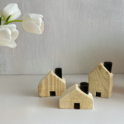 Holz Haus “Fini” natur mit Schornstein als Kerzenhalter in 3 Größen.